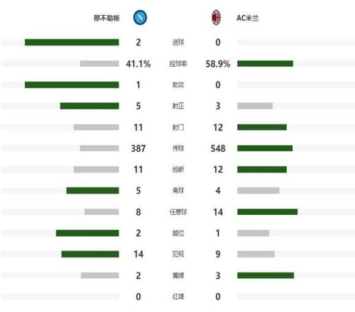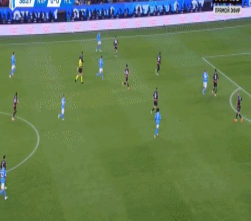第22分钟,迈尼昂扑救脱手,惊出红黑军团一身冷汗,好在埃尔马斯的打门没有命中目标,第37分钟AC米兰获得反击机会,萨勒马科尔斯带球推进到前场后,分给了无人盯防的恩昆库,但后者的打门放了高射炮,逃过一劫的那不勒斯,在2分钟之后打破场上平衡,迈尼昂左路下底传中,造成迈尼昂脱手,内雷斯补射建功,帮助那不勒斯取得了1-0的领先。