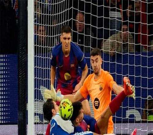 最精彩的一幕出现在上半场补时阶段:佩雷·米利亚接卡洛斯·罗梅罗精准传中,近距离头球攻门,皮球直奔死角。千钧一发之际,加西亚飞身单掌将球托出横梁!全场瞬间沸腾,而这一次,欢呼属于巴萨。
