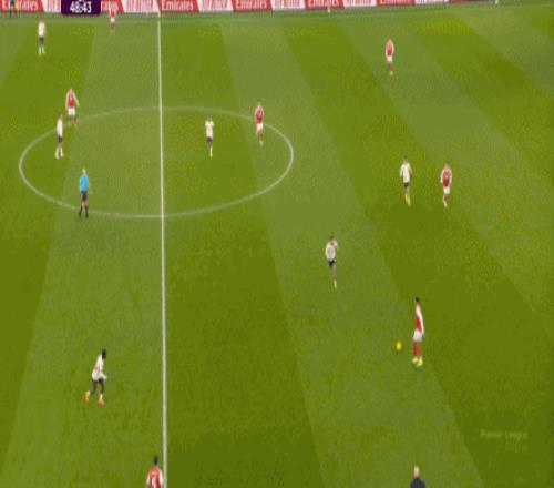 在萨卡的牵制下,右肋区域也形成了不错的进攻: