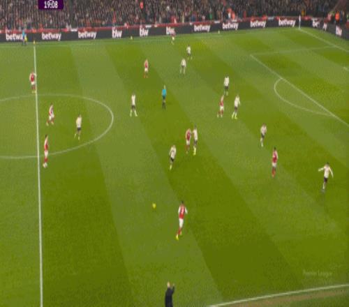 当阿尔特塔因为对手没有射正而高兴的时候,阿森纳球迷就需要接受这一点,也就是阿森纳的进攻,会因为位置、线路和方式方法受到战术上的限制,从而获得攻转守时逼抢和防守上的安全性,但代价就是上半场的阿森纳的射门,只能是来自萨卡和特罗萨德几乎镜像一样的操作: