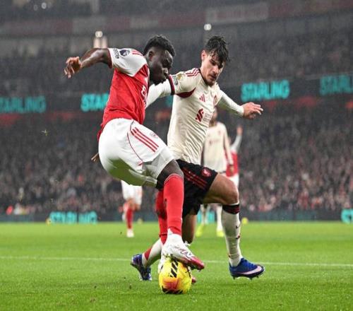 那么从这个角度来说的话,阿森纳今天的表现就不错了,比如在上半场开局阶段,萨卡这一侧就打得很有压制力: