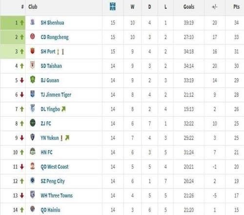 中超最新积分榜:降级4选2,深圳赛程最艰难,海牛亚泰同积18分